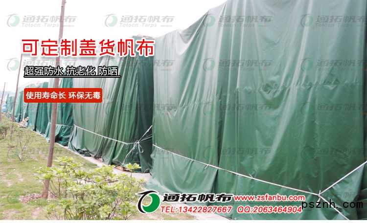 中山通拓帆布厂出品的PVC涂塑布、货场盖布也可以叫做防水帆布,可以广泛用于各种领域,例如厂矿盖布也可以做成汽车盖布,帆布帐篷,也可以用在码头,港口的船用盖布,以及各种盖货用的货场盖布等等。